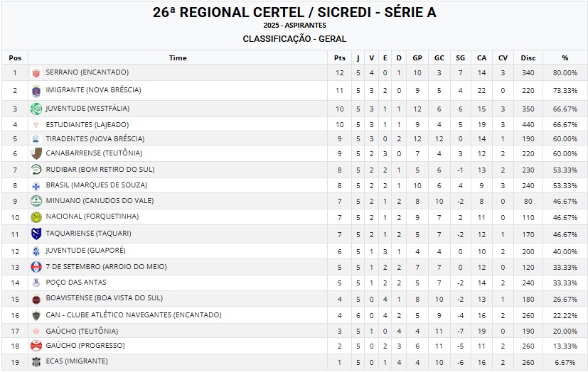 Acompanhe todos os detalhes da competição na página do campeonato Regional Série A - Aspirantes.