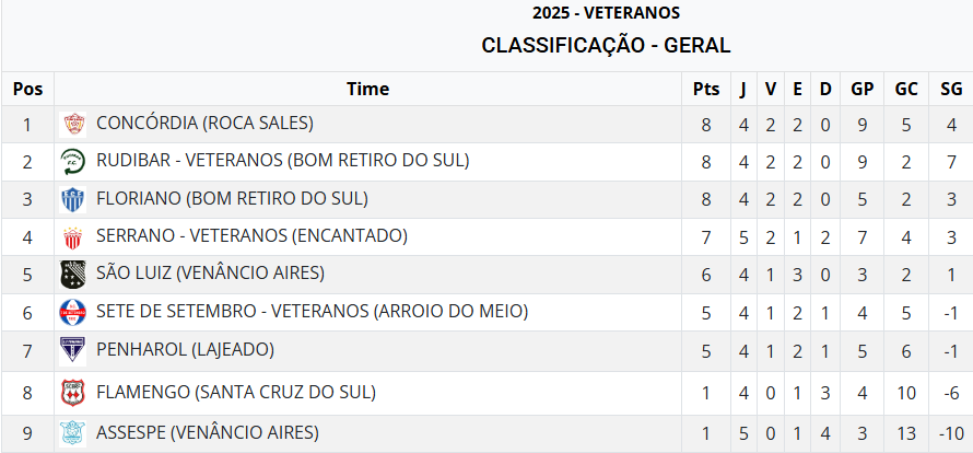 Neste domingo (05/10/2025) ocorreram os confrontos válidos pela 8ª rodada do Campeonato Regional Certel / Sicredi pela categoria Veteranos.